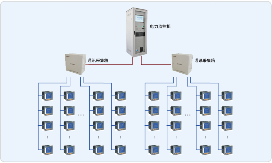 陜西中煙電力系統(tǒng)監(jiān)控現(xiàn)場分為兩個低壓配電室:東配電室和西配電室。其中監(jiān)控室位于東配電室內(nèi)。現(xiàn)場儀表為上海安科瑞ACR系列智能電力儀表,儀表通過MODBUS協(xié)議RS485總線連接到串口服務(wù)器上,再與計(jì)算機(jī)連接,實(shí)現(xiàn)數(shù)據(jù)交換。