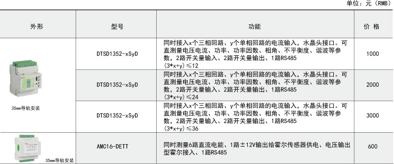 DTSD1352 - xSyD系列導(dǎo)軌式多回路電力儀表主要用于多個(gè)三相回路的全電參量測(cè)量,最多可同時(shí)接入x個(gè)三相回路、y個(gè)單相回路的電流輸入??芍苯踊蜷g接測(cè)量電壓電流、功率、功率因數(shù)、相角、不平衡度、諧波等參數(shù)。