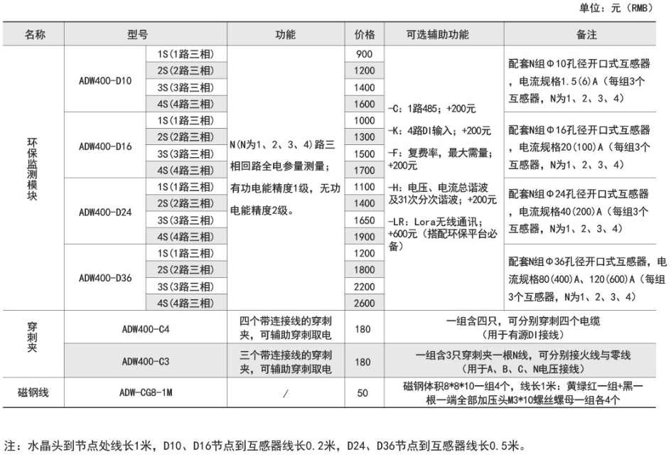 ADW400環(huán)保監(jiān)測模塊主要用于計量低壓網(wǎng)絡(luò)的三相有功電能,同時可選擇四個回路的電流輸入,具有RS485通訊和470MHz無線通訊功能,方便用戶進(jìn)行用電監(jiān)測、集抄和管理。可靈活安裝于配電箱內(nèi),實現(xiàn)對不...