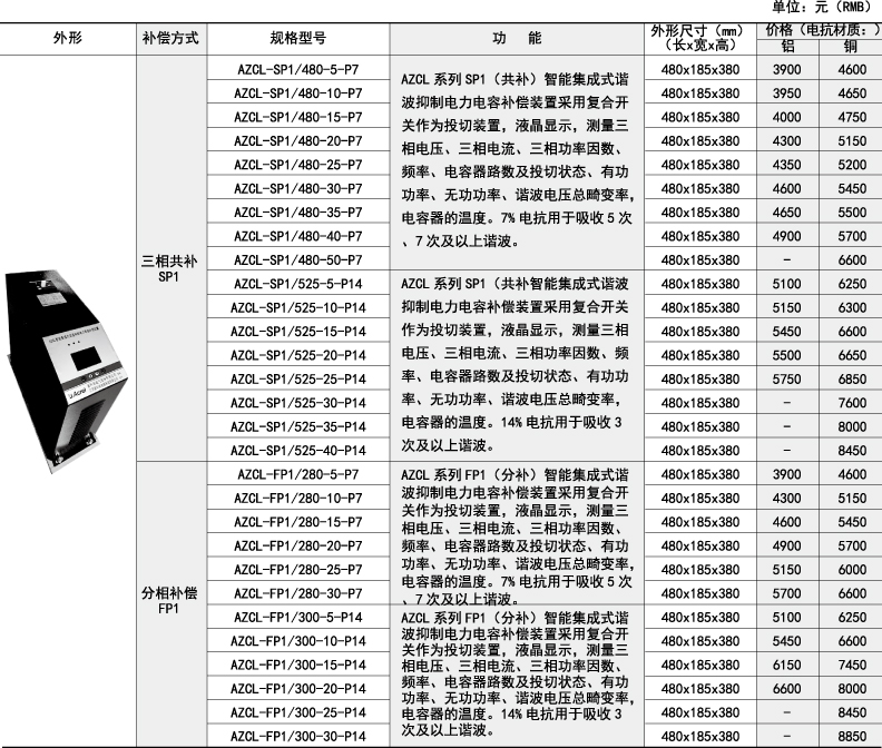 AZCL系列智能集成式諧波抑制電力電容補償裝置是應用于0.4kV、50Hz低壓配電中用于節省能源、降低線損、提高功率因數和電能質量的新一代無功補償設備。其中串接7%電抗器的產品使用于主要諧波為5次、7次及以上的電氣環境,串接14%電抗器的產品使用于主要諧波為3次及以上的電氣環境。