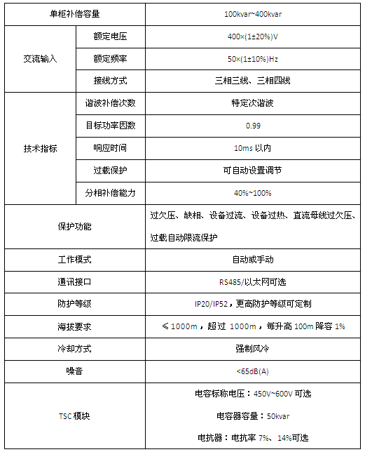 技術(shù)參數(shù):無功補償分補容量100kvar,共補容量50kvar