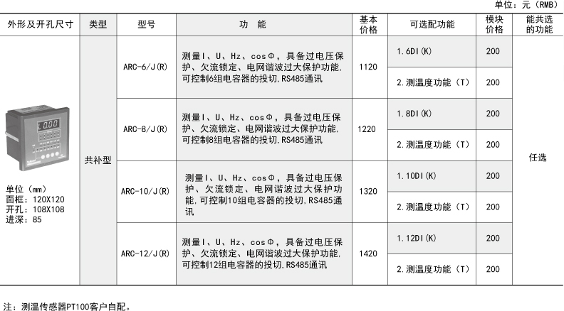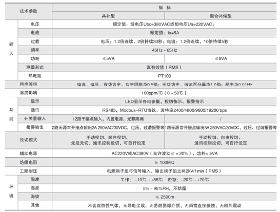 技術(shù)要求:輸入三相電壓AC220V;輸入電流AC5A;投切方式順序投切;補(bǔ)償方式三相共補(bǔ);投切控制路數(shù)6路;開(kāi)關(guān)量輸入6路;柜內(nèi)溫度檢測(cè)。