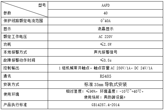 技術要求:故障電弧報警,AC 40A以下的負載