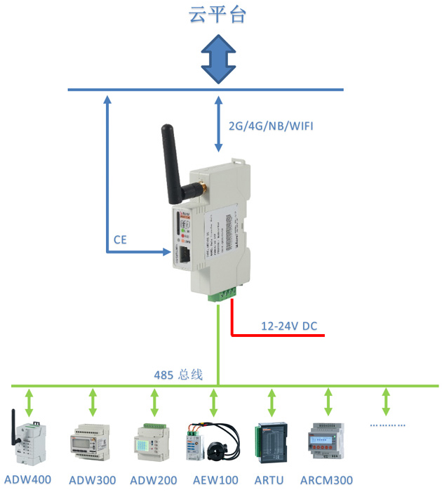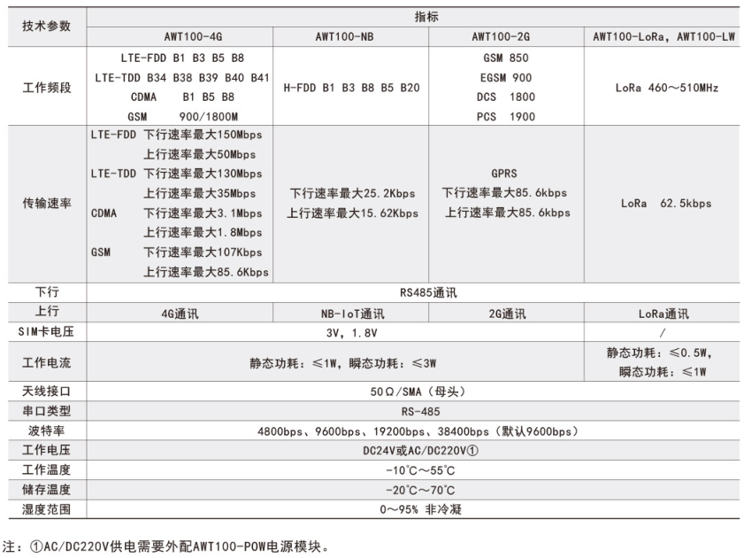 注:①AWT100-2G/NB/4G無線通信終端能通過安科瑞平臺協議與安科瑞服務器通訊。