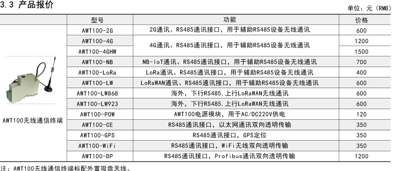 • AWT100-2G/NB/4G無線通信終端典型應用