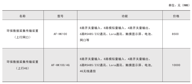 AF-HK100 污染源在線自動監控(監測)數據采集傳輸儀是應環保領域各級國控、省控 及市控污染源環境在線監控(監測)系統的需求而開發研制的產品,通過模擬通道、開關通 道、數字通道(RS232/485/LoRa)與前端各類監測儀器/儀表實現無縫連接,進行本地數據 采集、存儲、處理與展示,并通過 4G/有線等網絡將數據遠傳至監控中心。