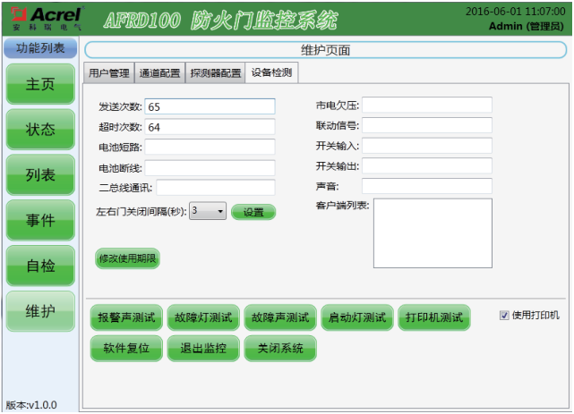 該界面可以直接查看和設(shè)置一些系統(tǒng)運(yùn)行參數(shù),獨(dú)立測試監(jiān)控器部分功能,但只有“管理員”及其以上級別才有操作權(quán)限。