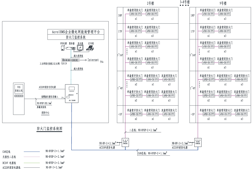 AFRD100防火門監(jiān)控系統(tǒng),是根據(jù)國家現(xiàn)行規(guī)范標(biāo)準(zhǔn)由安科瑞電氣股份有限公司研發(fā)的全數(shù)字化獨(dú)立運(yùn)行的系統(tǒng),已通過國家消防電子產(chǎn)品質(zhì)量監(jiān)督檢驗(yàn)中心的消防電子產(chǎn)品試驗(yàn)認(rèn)證,并且均通過嚴(yán)格的EMC電磁兼容試驗(yàn),保證了該系列產(chǎn)品在低壓配電系統(tǒng)中的安全正常運(yùn)行,現(xiàn)均已批量生產(chǎn)并在全國得到廣泛地應(yīng)用。該系統(tǒng)通過對電動(dòng)閉門器、電磁釋放器、門磁開關(guān)等進(jìn)行信號采集及控制,實(shí)現(xiàn)了防火隔離和防煙,并根據(jù)用戶的需求,還可以與AcrelEMS企業(yè)微電網(wǎng)管理云平臺或電氣火災(zāi)自動(dòng)報(bào)警系統(tǒng)等進(jìn)行數(shù)據(jù)交換和共享。